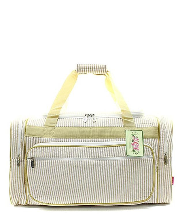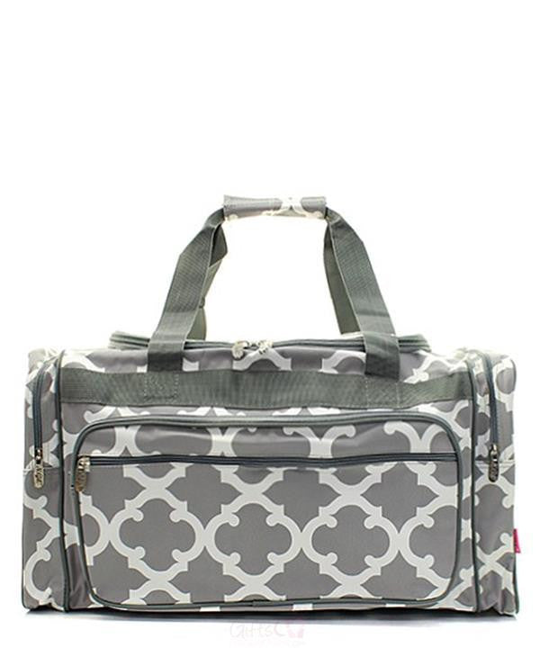 Soft Canvas Construction * Zip Around Top Closure * 2 Outside Zip Pockets * Plastic Feet on Bottom * Double Handles with 10" Drop